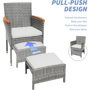 - 🍹🧊 – 【Sturdy & Durable】Patio furniture sets adopt gray all-weather PE rattan wicker, which is waterproof and UV-proof, making the whole bistro set more sturdy. The strong interior steel frame of balcony furniture set ensures longer service life. outdoor patio furniture set outdoor furniture set patio set chairs