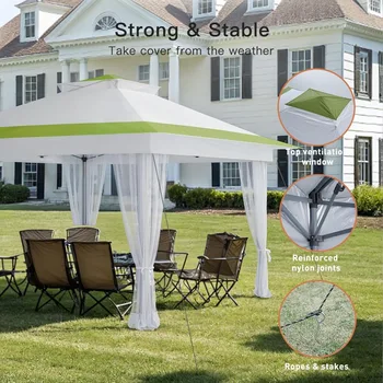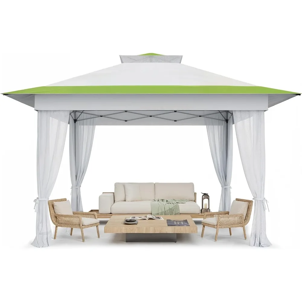 - 𝗢𝗻𝗲 𝗕𝘂𝘁𝘁𝗼𝗻 𝗤𝘂𝗶𝗰𝗸 &𝗘𝗮𝘀𝘆 𝗦𝗲𝘁𝘂𝗽AMADA 13×13 Pop Up Gazebo features patented one push center lock tech, just open the canopy, push the button, and adjust the height for instant shade in only a minute!This outdoor canopy for patio can be set up by one person without any tools. Three adjustable height settings with one central button and no-pinch height adjusters to allow easy setup and breakdown ensure convenience and safety.