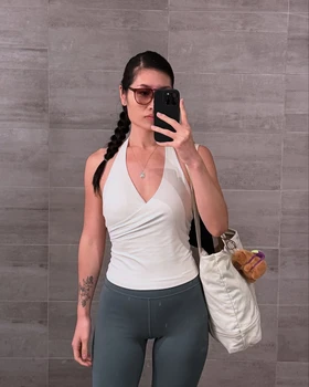 CSB blue and black halter top with built-in chest cushion yoga sports vest