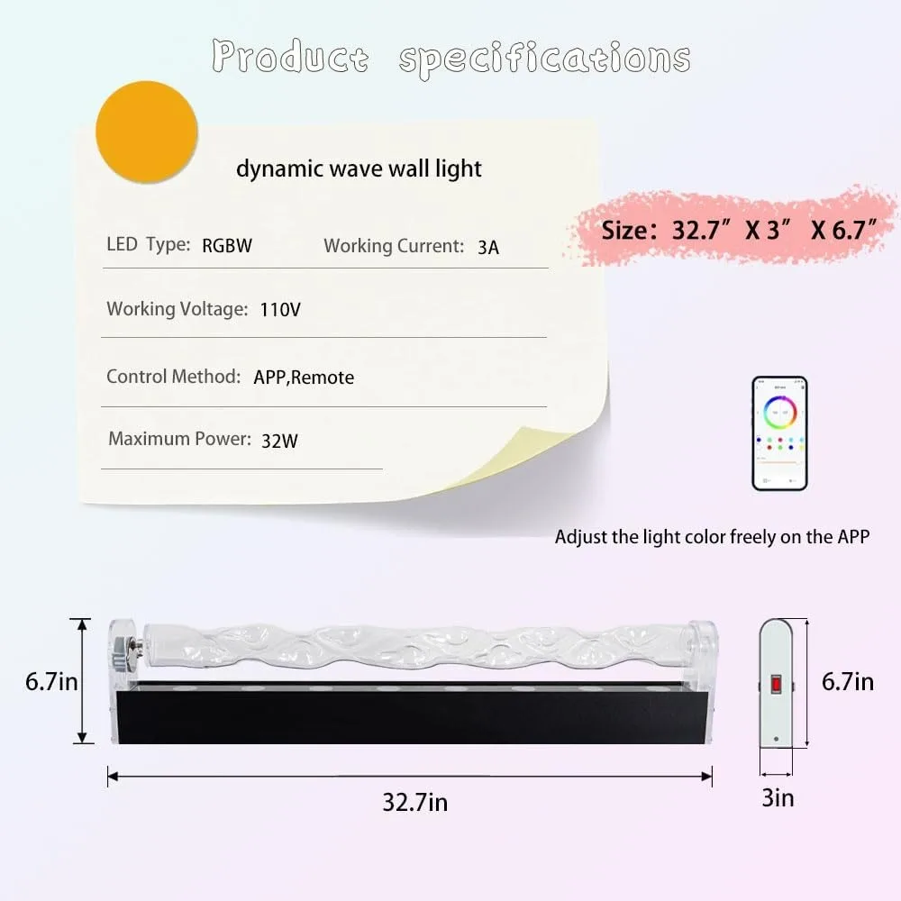 - Personalized Scenes: The dynamic wave wall light has 16 million color options, a wide range of adjustable RGB color, and a variety of customizable dynamic modes, you can create any atmosphere you want. From romantic Aurora Blue to cozy warm white, the possibilities are endless